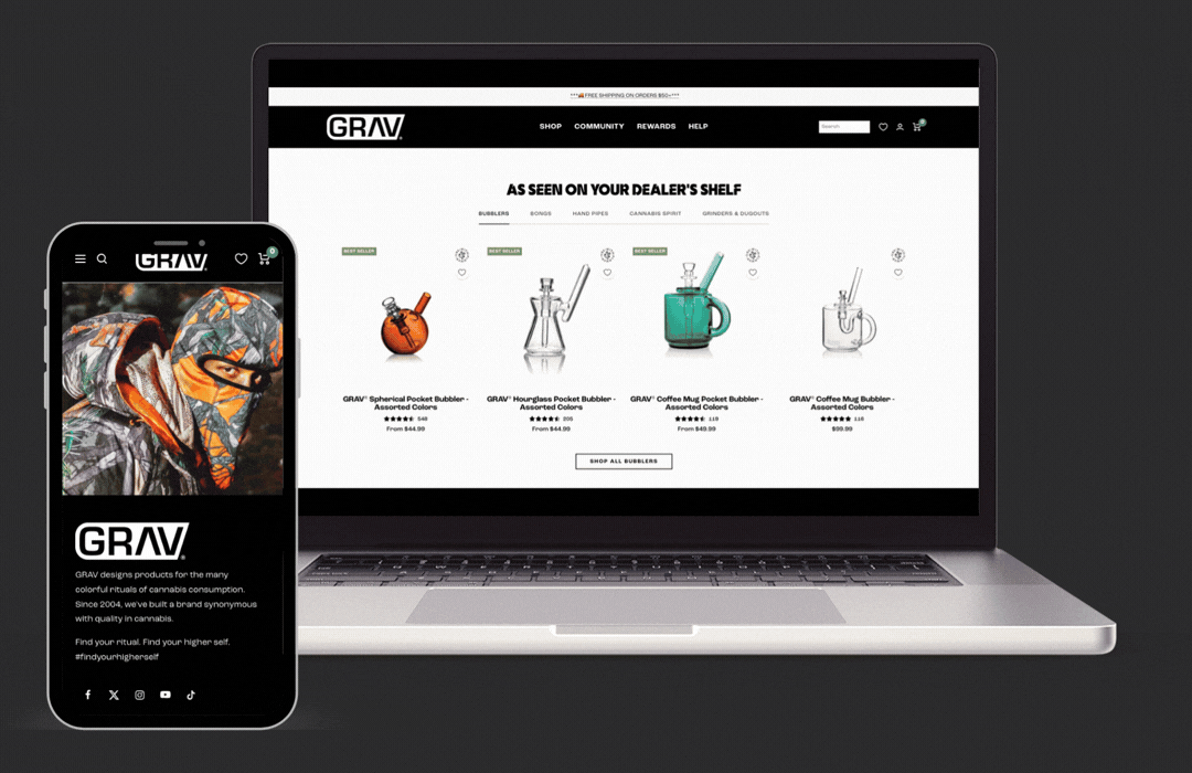 GRAV is an established glassware brand with a large, highly engaged customer base and a growing product catalog spanning multiple product lines, price points, and use cases.